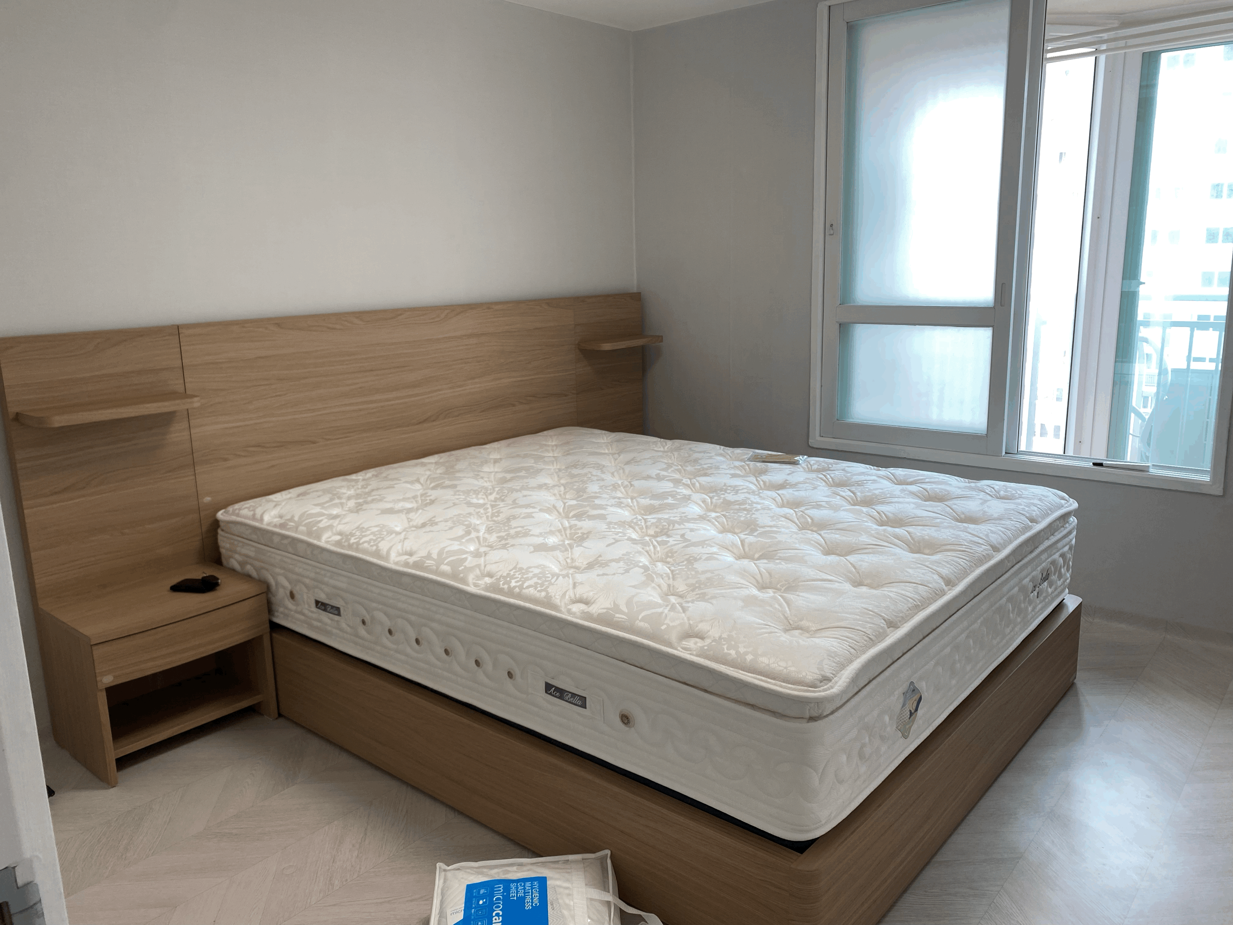 안방은 에이스침대 국민 프레임(킹사이즈)을 들였고, 부부의 작은 욕심으로.. 양쪽 패널을 구매했는데 수납공간이 적은 집이라 유용하게 잘 쓰고 있다. 매우 만족!